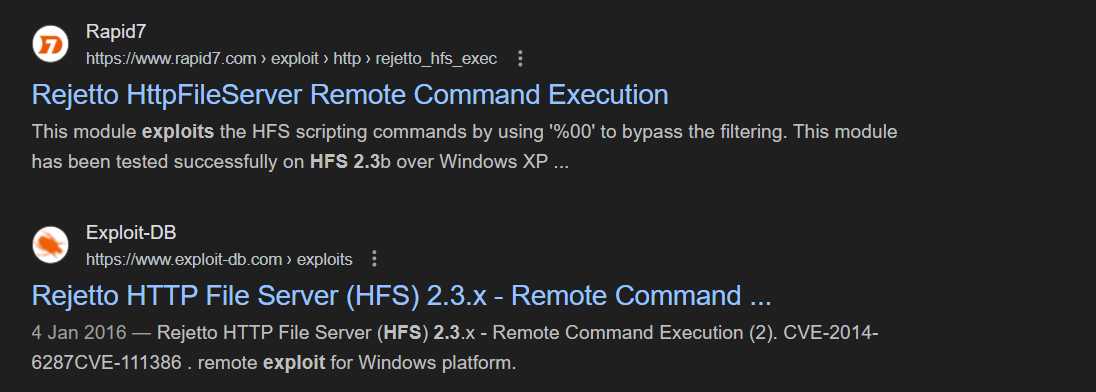 - and there is a measploit module for this vulnerability in rejeeto-hfs